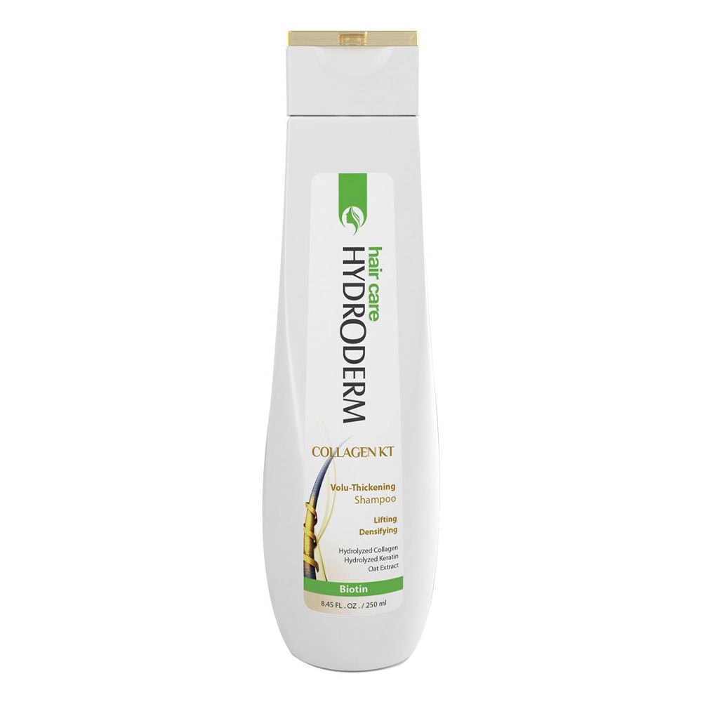 شامپو حجم دهنده موی سر هیدرودرم دقیقا همان محصولی است که می خواهید. این شامپو حاوی کلاژن و کراتین است. این دو ماده، تاثیر زیادی در سلامت موها دارند چون جز ساختار اصلی مو هستند. این شامپو بعد از یک دوره استفاده مداوم تارهای مو نازک و شکننده را ضخیم می کند که این مسئله باعث حجم گرفتن موها می شود، بنابراین احساس پر پشتی و حجم قابل توجهی در موهایتان خواهید کرد. همچنین این محصول بعد از استفاده باعث افزایش انعطاف و حالت پذیری موها هم می شود.