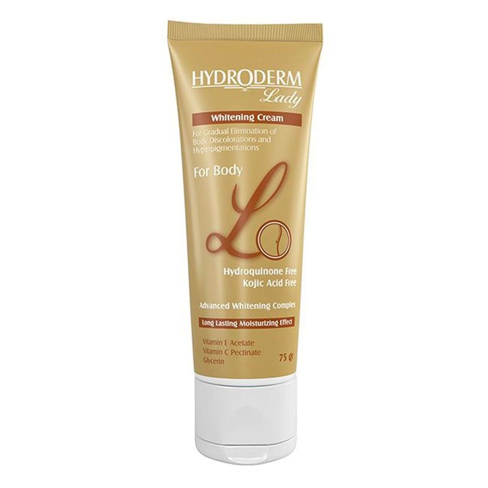 کرم روشن کننده بدن لیدی هیدرودرم با ترکیبات روشن کننده، سفید کننده و ضد لک پیشرفته و خاصیت مرطوب کنندگی ماندگار، لک های پوستی ناشی از نور خورشید، سولاریم، عوامل محیطی، تغییرات هورمونی، لک های مادرزادی، اختلالات و بیماری های پوستی و جای جوش و آکنه بدن را کاهش و بهبود بخشیده و از ایجاد لک های جدید جلوگیری می کند. با استفاده مستمر از کرم روشن کننده بدن هیدرودرم، پوستی روشن، شفاف و یکدست خواهید داشت. کرم روشن کننده بدن هیدرودرم حاوی ویتامین های E,C و گلیسیرین می باشد که ترکیب این مواد روشن کننده و ویتامین ها سبب تقویت پوست، بازسازی و تحریک تولید کلاژن، افزایش مقاومت پوست در برابر آسیب های محیطی و روشن و کمرنگ شدن لک های تیره نواحی آرنج، کشاله ران، زیر بغل، آرنج و قوزک پا می شود.