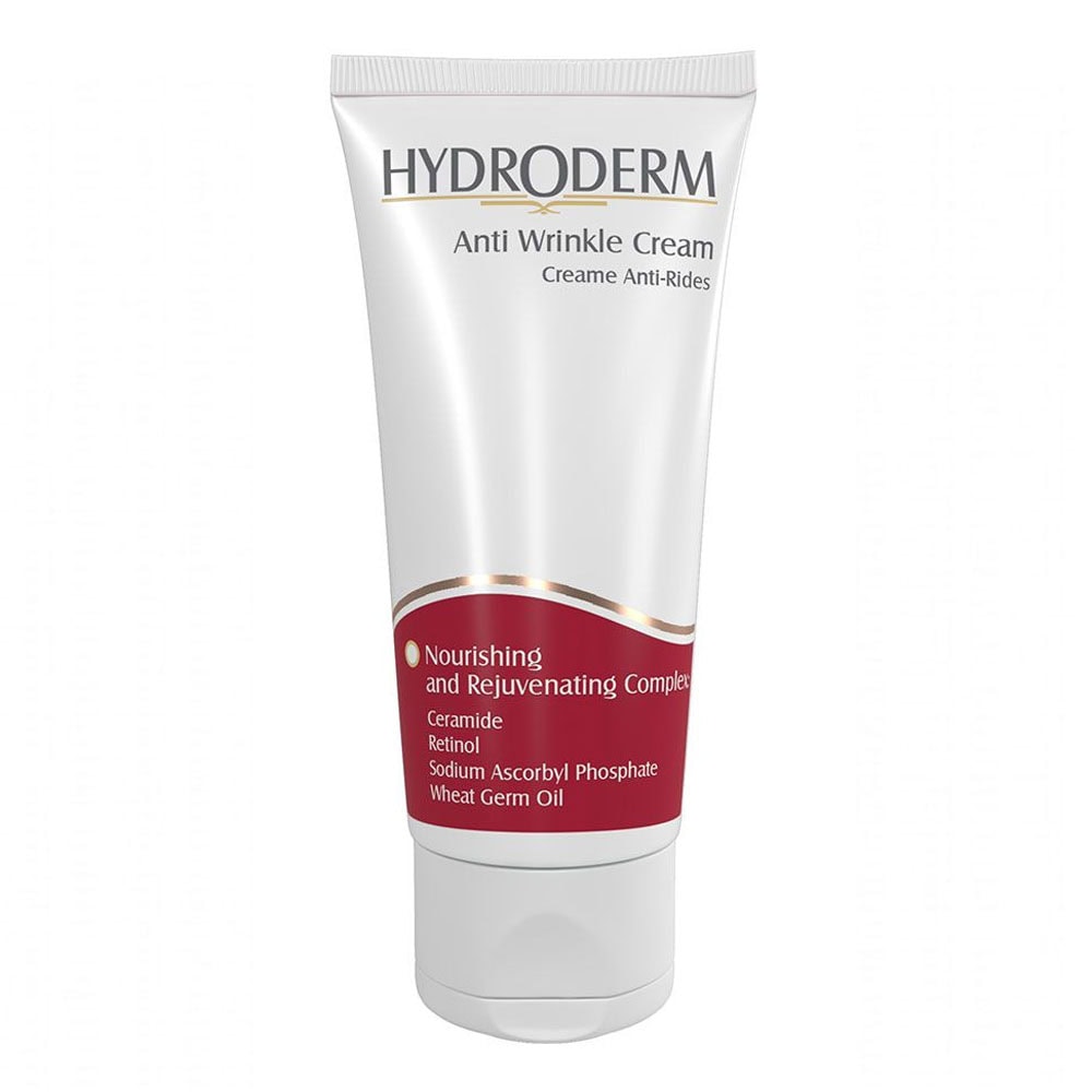 کرم ضد چروک پوست هیدرودرم در ترکیبات موثر، عصاره گیاهی و کمپلکس ویتامین های A ،C ،E جهت تقویت پوست و جلوگیری از بروز پیری زودرس و همچنین ایجاد چین و چروک های آن استفاده شده است. روغن دانه انگور موجود در این فرآورده یک ترکیب آنتی اکسیدانی بسیار قوی است که سرشار از ویتامین E و فلاوونوئیدها بوده که علاوه بر خنثی سازی عملکرد رادیکال های آزاد دارای خواص ضد چروک قوی می باشد، همچنین با ترمیم رشته های کلاژن و الاستین مانع از شل شدگی و افتادگی پوست می گردد. روغن جوانه گندم به کار رفته در این محصول به علت دارا بودن مقادیر سرشاری از ویتامین های A ،E مانع از بروز اثرات زیانبار عوامل محیطی بر روی پوست می گردد.در این محصول از فرم فعال ویتامین C یا سدیم آسکوربیل فسفات نیز استفاده شده است. ویتامین C با فعال نمودن سنتز رشته های کلاژن مانع از بروز زودرس چروک های صورت و گردن می گردد و با ایجاد وقفه در تولید رنگدانه های پوستی از بروز تیرگی و لک نیز ممانعت می کند.