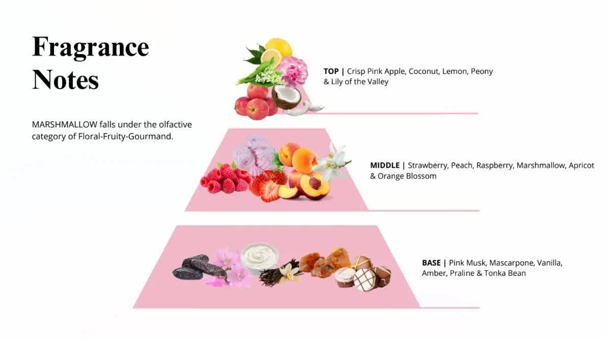 نتهای میانی: توتفرنگی، هلو، تمشک، زردآلو و مارشمالو
