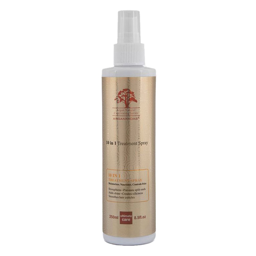 اسپری درمانی 10 در 1 آرگان میداس با ترکیب روغن آرگان و فرمولاسیون سبک، مرطوبکننده و تغذیهکننده عمقی موها است، ضد وز و افزایشدهنده درخشندگی، تقویتکننده و ترمیمکننده ساختار مو، جلوگیریکننده از موخوره، نرمکننده و حالتدهنده، محافظتکننده در برابر حرارت ابزارهای حالتدهی، حاوی آنتیاکسیدان برای محافظت محیطی، مناسب انواع مو بهویژه آسیبدیده و رنگشده، با استفاده آسان روی موهای خشک یا مرطوب و باعث بهبود سلامت و کیفیت موها میشود.این اسپری با ایجاد یک لایه محافظ روی تارهای مو، از آسیبهای ناشی از حرارت، آلودگی و عوامل محیطی جلوگیری میکند و باعث افزایش مقاومت موها در برابر شکستگی و آسیب میشود. استفاده منظم آن به مرور زمان به ترمیم موهای آسیبدیده کمک کرده و باعث نرمتر و لطیفتر شدن موها میگردد. همچنین سبک بودن فرمولاسیون، این محصول را برای استفاده روزانه مناسب میکند بدون اینکه موها را چرب یا سنگین کند. برای بهترین نتیجه، توصیه میشود پس از شستوشوی مو، اسپری را روی موهای مرطوب یا خشک استفاده کنید و سپس موها را به دلخواه حالت دهید.
