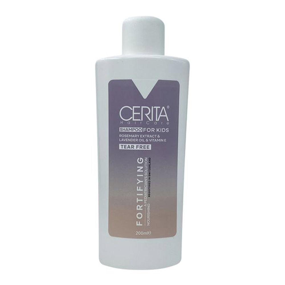شامپو تقویت کننده مو کودکان سریتادر حجم “200 میل” یک شوینده ملایم جهت پاکسازی پوست سر کودک است. این شامپو، حاوی عصاره رزماری و روغن اسطوخدوس، ویتامین E می باشد.موهای لطیف و ظریف کودکان در معرض عوامل مختلف محیطی مانند آلودگی هوا و مشکلات تغذیه ای و یا حتی خوابیدن بر روی بالش و مالش و اصطکاک ناشی از آن می تواند صدمه دیده و این امر بر رشد و تکامل موهای کودک تاثیر منفی بگذارد. شامپو تقویت کننده موی کودک سریتا با داشتن شوینده های ملایم و مواد فعال گیاهی و طبیعی به رفع این مشکلات موی کودک کمک کرده و حتی قابل استفاده برای بزرگسالان با مشکلات حساسیت پوستی و خشکی و شکنندگی موها نیز می باشد.