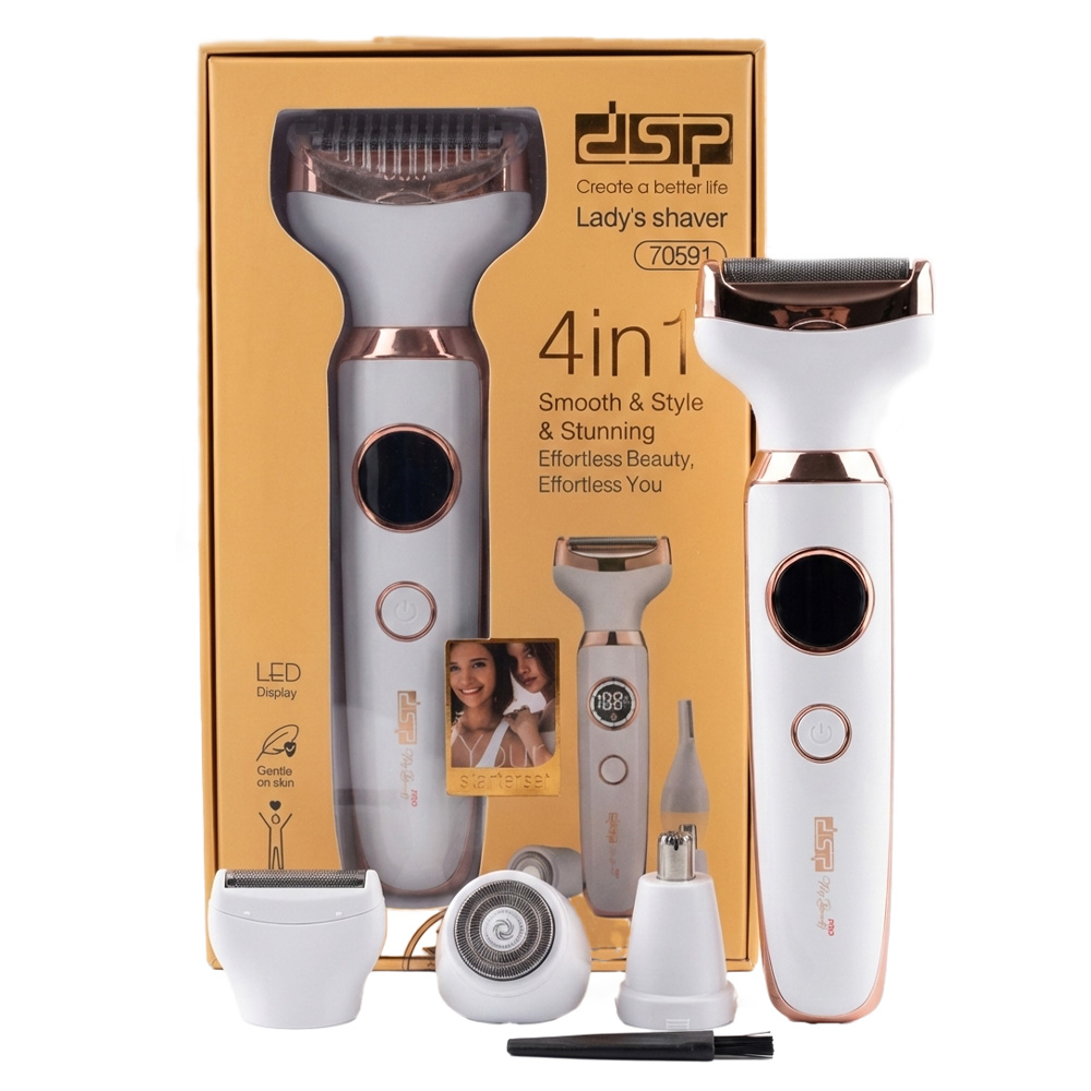 شیور زنانه 4 کاره DSP سری 70591 یک شیور زنانه حرفهای، چندکاره و باکیفیت برای اصلاح آسان و بدون دردسر هستید، شیور زنانه 4 کاره DSP مدل 70591 میتواند یکی از بهترین انتخابهای شما باشد. این دستگاه با طراحی مدرن و کاربردی، تجربهای سریع، ایمن و کاملاً بهداشتی از اصلاح را برای بانوان فراهم میکند.