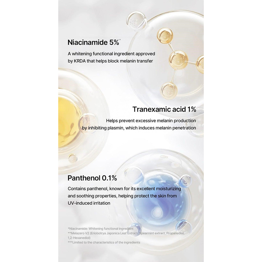 حاوی ترانگزامیک اسید جهت تسکین، کاهش تولید ملانین و روشن سازی لکه های قهوه ای ناشی از نور خورشید