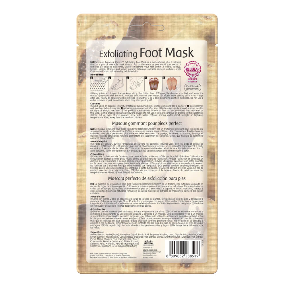 ماسک لایه بردار پا پیوردرم EXFOLIATIN محصولی منحصر به فرد از برند کره ای پیوردرم است . این ماسک بصورت ورقه ای شبیه جوراب طراحی شده است . این محصول سلول های مرده و باکتری های پاها را لایه برداری کرده و به پاها لطافت و نرمی را هدیه می کند . ماسک لایه بردار پا پیودرم حاوی عصاره پاپایا ، لیمو ، پرتقال و بابونه است . ماسک ورقه ای لایه بردار پا پیوردرم با عصاره گیاهان بابونه و پاپایا بعد از گذشت دو هفته به طور کامل سلول های مرده پوست را از بین می برد و علاوه بر آن لطافت و نرمی را به محض استفاده به ارمغان می آورد . عصاره بابونه استفاده شده در ترکیبات این محصول باعث جوانسازی پوست شده و عصاره پاپایای موجود در آن باعث تقویت ایمنی بدن و از بین برنده رادیکال های آزاد می شود . نکته مهم در استفاده از ماسک لایه بردار پا پیوردرم این است که : در صورت وجود زخم ، بریدگی و سوختگی و ضایعاتی از این دست از این محصول استفاده نکنید و تا زمان اتمام لایه برداری از استفاده مجدد ماسک جلوگیری نمایید .
