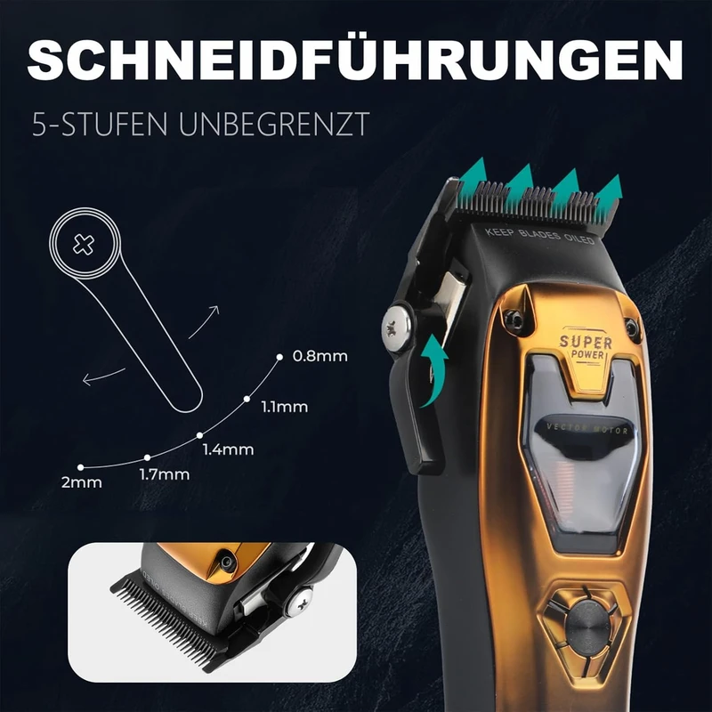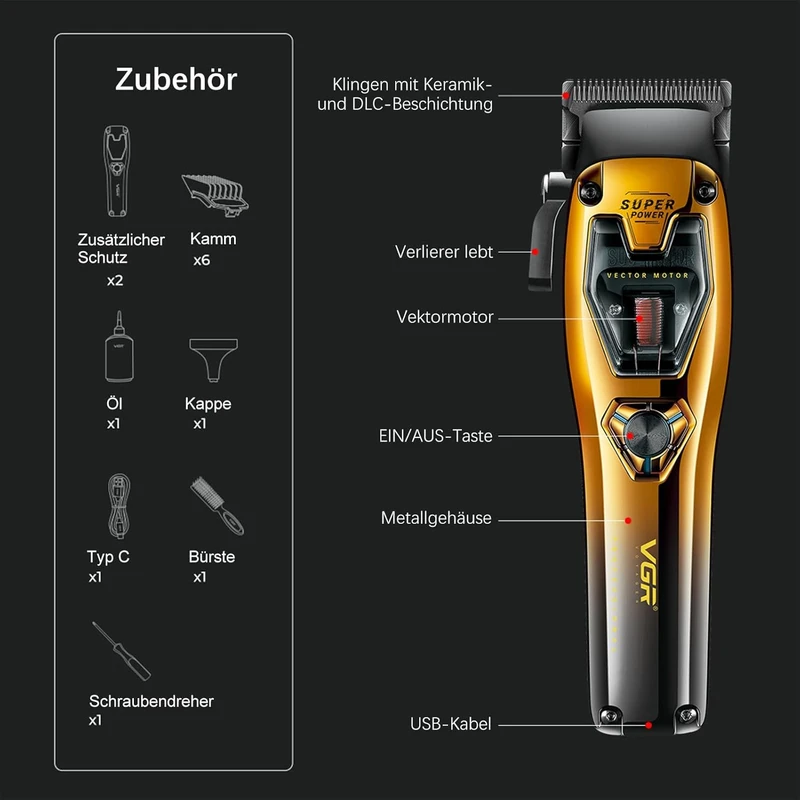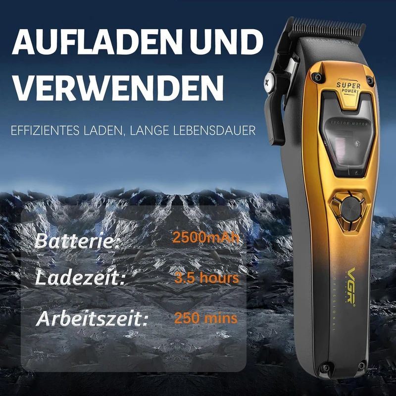 ماشین اصلاح موی سر شارژی وی جی ار سری V-668 این ماشین اصلاح حرفهای بیسیم VGR 668 مجهز به موتور وکتور پرسرعت ۸۰۰۰ تا ۱۱۰۰۰ دور در دقیقه و عملکرد خودکار است که حتی موهای ضخیم و مقاوم را به راحتی و با دقت اصلاح میکند. اهرم قابل تنظیم (۰.۸ تا ۲ میلیمتر) امکان کنترل دقیق طول برش را فراهم کرده و نتایج تمیز و حرفهای ارائه میدهد. باتری لیتیوم ۲۵۰۰ میلیآمپر ساعتی تا ۲۵۰ دقیقه کار مداوم پس از ۳.۵ ساعت شارژ دارد و با درگاه USB Type-C شارژ سریع و آسان را امکانپذیر میکند، بنابراین این دستگاه هم برای استفاده خانگی و هم حرفهای مناسب است. تیغههای سرامیکی با پوشش DLC دوام بالایی دارند، حرارت کمتری تولید میکنند و اصلاحی نرم و دقیق ارائه میدهند، برای فیدینگ و کوتاهیهای دقیق ایدهآل هستند. طراحی دستگاه با نمایش جزئی موتور BLDC و سه کاور قابل تعویض در رنگهای مختلف، تجربه هر اصلاح مو را شخصی و متفاوت میکند. این مجموعه شامل شش شانه راهنمای قابل تنظیم (۱.۵ تا ۱۲ میلیمتر)، دو کاور اضافی، کابل داده، روغن تیغه، برس تمیزکننده، پیچگوشتی، محافظ تیغه و جعبه نگهداری با کیفیت بالا است تا هر بار اصلاحی حرفهای و دقیق داشته باشید. این دستگاه ترکیبی از قدرت، دقت، دوام و طراحی زیبا است که تجربه اصلاح حرفهای را در خانه یا سالن برای شما ممکن میسازد.