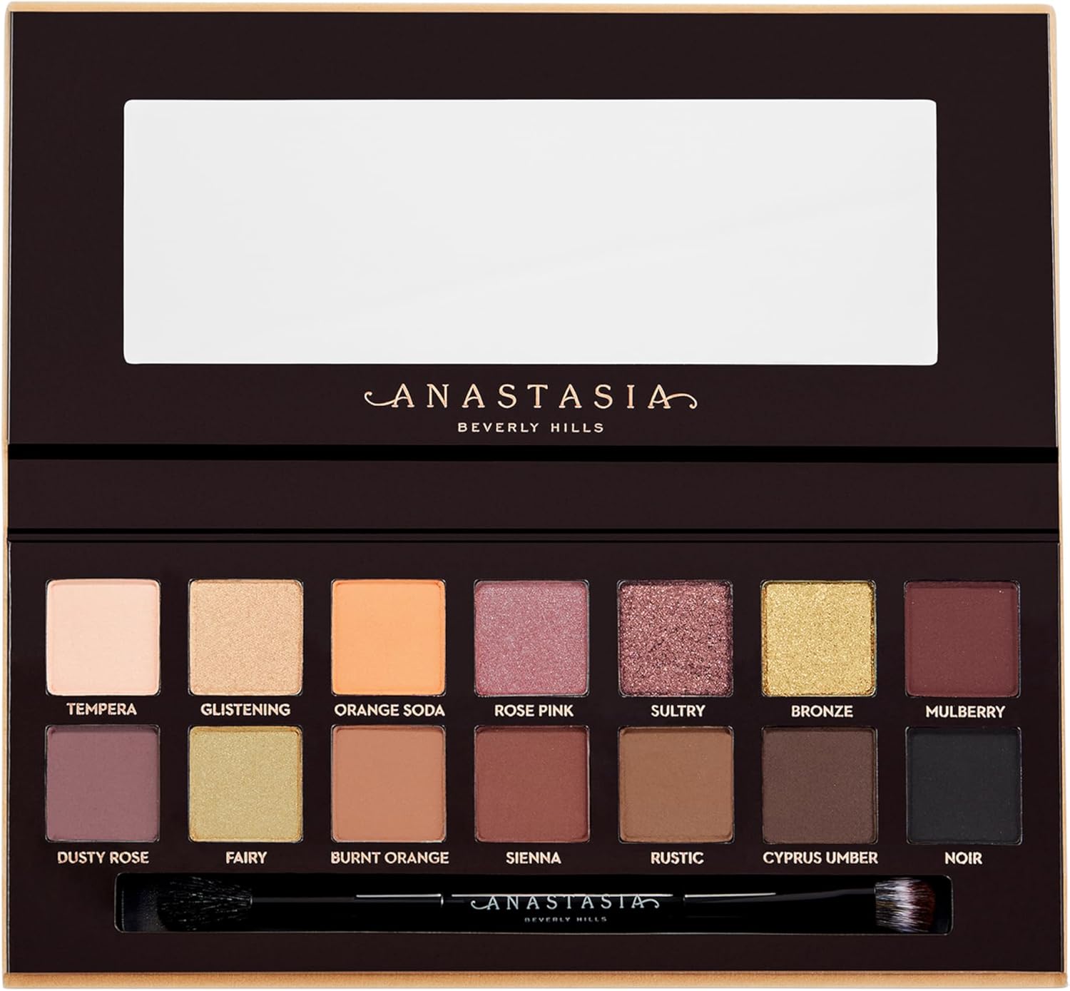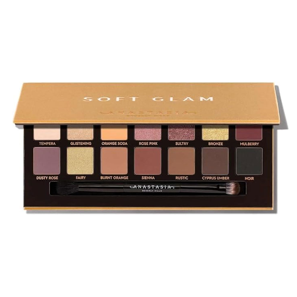 پالت سایه چشم آناستازیا Soft Glam یک مجموعه بینظیر از ۱۴ رنگ با تناژهای گرم و طبیعی است که شامل ۹ سایه مات و ۵ سایه متالیک میباشد. این پالت با فرمولاسیون پیگمنت بالا و قابلیت ترکیب آسان، امکان ایجاد آرایشهای متنوع از طبیعی تا گلامور را برای شما فراهم میکند. همچنین، این پالت دارای یک براش دوطرفه و آینه بزرگ است که استفاده از آن را در هر مکانی آسان میسازد.پالت سایه چشم آناستازیا Soft Glam با دارا بودن رنگبندی جذاب و ترکیب رنگ بسیار حرفه ای یکی از پر فروشترین سایه های برند آناستازیا بورلی هیلز می باشد. در کنار هم قرار دادن رنگ های فوق العاده مات و غنی از پیگمنت در کنار رنگ های براق و متالیک امکان ایجاد تنوعی بی نظیر از آرایش های روز و شب را میسر می کند.فرمول کرمی و بسیار سبک با بلندینگ بسیار روان از ویژگی های فوق العاده سایه سافت گلم می باشد. رنگ های متالیک مکمل سایه های مات و برای افزودن جلوه بیشتر در آرایش های شب با وسواس هر چه بیشتر انتخاب شده اند. همچنین با بهره گیری از براش های ریز و سرکج می توان خطوط بادوام و براق از این سایه ها ایجاد کرد.