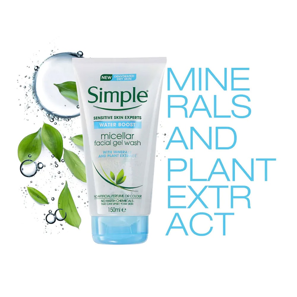 ژل شستشو صورت سیمپل Water Boost فرمولاسیونی سبک از ژل و آب دارد و بدون ایجاد خشکی بیش از حد و سفتی پوست، آرایش و آلودگی پوست را از بین میبرد. این محصول، پوست خشک و دهیدارته را آبرسانی میکند و سبب افزایش طراوت و انعطاف پذیری پوست میشود. ژل شوینده واتر بوست Simple، غنی شده با مواد معدنی ضروری برای پوست و عصارههای گیاهی است و پوست را تقویت خواهند کرد. این ژل شستشو، حاوی پری بیوتیک پنتاویتین مشتق از گیاه بوده که مادهای فعال و منحصربهفرد است و رطوبت را مانند آهنربا به پوست جذب میکند.