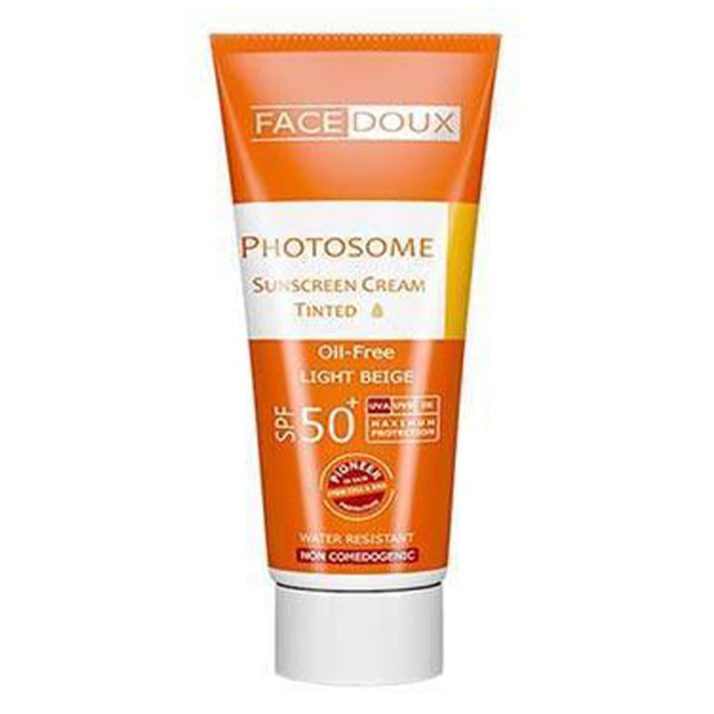 این ضد آفتاب از پوست در برابر اشعه های UVA، UVB و IR محافظت می کند. استفاده از این ضد آفتاب برای تمامی سنین مناسب است، علاوه بر این در برابر تعریق و آب بسیار مقاوم است.مناسب انواع پوست، خصوصا پوست های چرب، جوش دار و مختلط بوده و در برابر اشعه ماورا بنفش بسیار موثر عمل می نماید. کرم ضد آفتاب فیس دوکس در 2 نوع رنگی و بی رنگ عرضه شده است. ضد آفتاب رنگی فیس دوکس با رنگ بژ روشن میتواند جایگزین کرم پودر روزانه بانوان باشد. ضد آفتاب فیس دوکس بی رنگ نیز مناسب آقایان و بانوانی است که تمایل به مصرف کرمهای ضد آفتاب بدون رنگ دارند. ضد آفتابهای فوتوزوم فیس دوکس از سیستم قوی و موثر کنترل غدد چربی پوست بهرهمند است و از ایجاد جوشهای پوستی (کومدون) ممانعت میکنند.